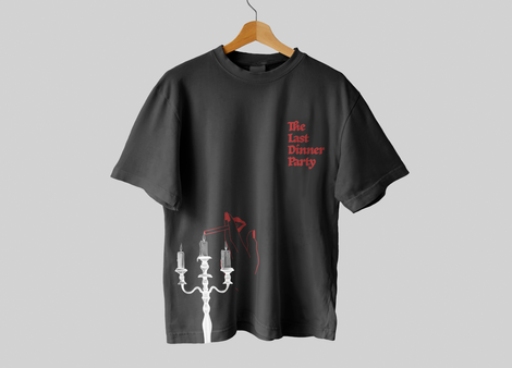 I developed mockup artwork and merchandise for the band, The Last Dinner Party, inspired by the sound and visuals for their songs Nothing Matters and Sinner. I felt a creative jolt from their music and wanted to create a piece that felt strong, gothic, edgy and combined both graphic design and illustration.